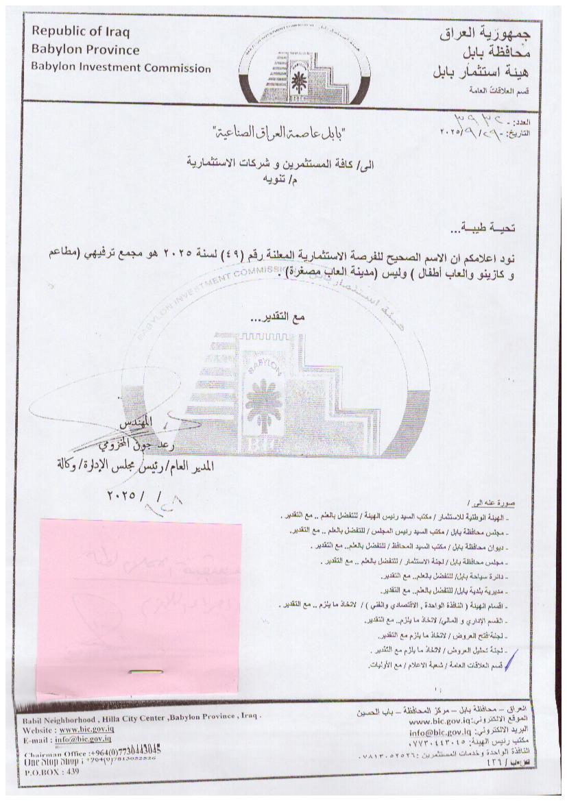 نود اعلامكم ان الاسم الصحيح للفرصة الاستثمارية المعلنة رقم (49) لسنة 2025 هو مجمع ترفيهي (مطاعم و كازينو و العاب اطفال ) وليس (مدينة العاب مصغرة ). مع التقدير..قراءة المزيد