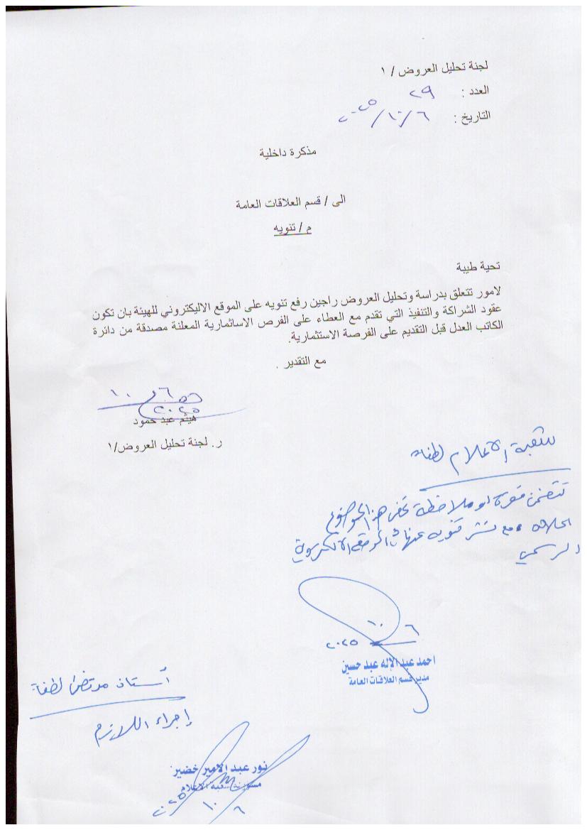 على المستثمرين والشركات الاستثمارية تصديق عقود الشراكة والتنفيذ التي تقدم مع العطاء على الفرص الاستثمارية من قبل كاتب العدل قبل التقديم على الفرصة الاستثمارية وذالك لأمور تتعلق بدراسة وتحليل العروض. مع التقدير..قراءة المزيد